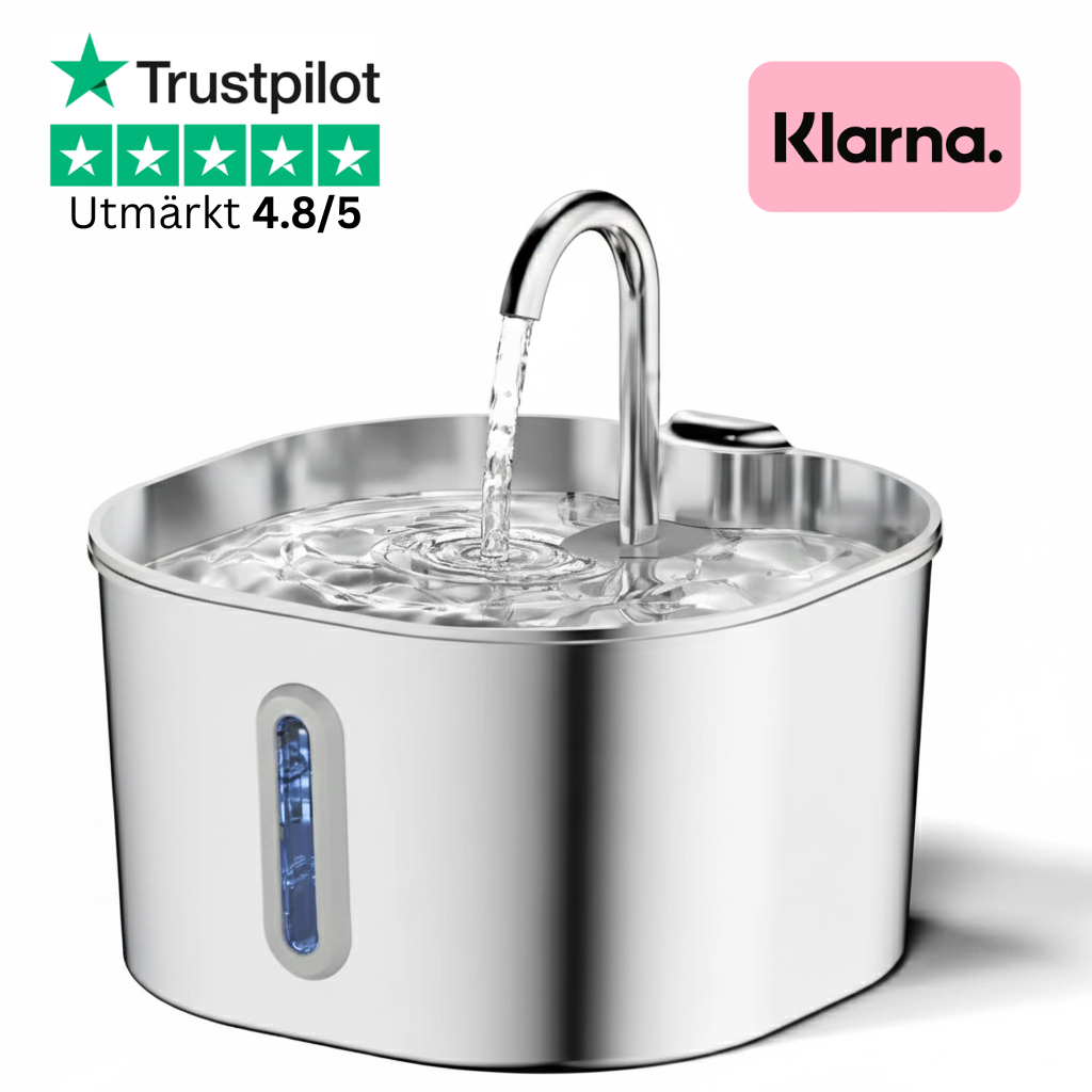 Fantastisk produkt! Jag har testat tre olika vattenfontäner till mina katter, men den här tar verkligen priset. De tidigare fontänerna blev snabbt smutsiga och slemmiga. Den här blir inte alls lika smutsig – ett enormt plus både för mig och mina katter. Jag har åtta katter, och minst fem av dem är väldigt kräsna med sitt vatten. Filter följer med fontänen, liksom rengöringsverktyg. Det gick snabbt och enkelt att sätta ihop den, och hittills har jag inte haft några som helst problem med prestandan. Om jag behövde köpa en till skulle jag göra det. Jag rekommenderar verkligen den här fontänen!